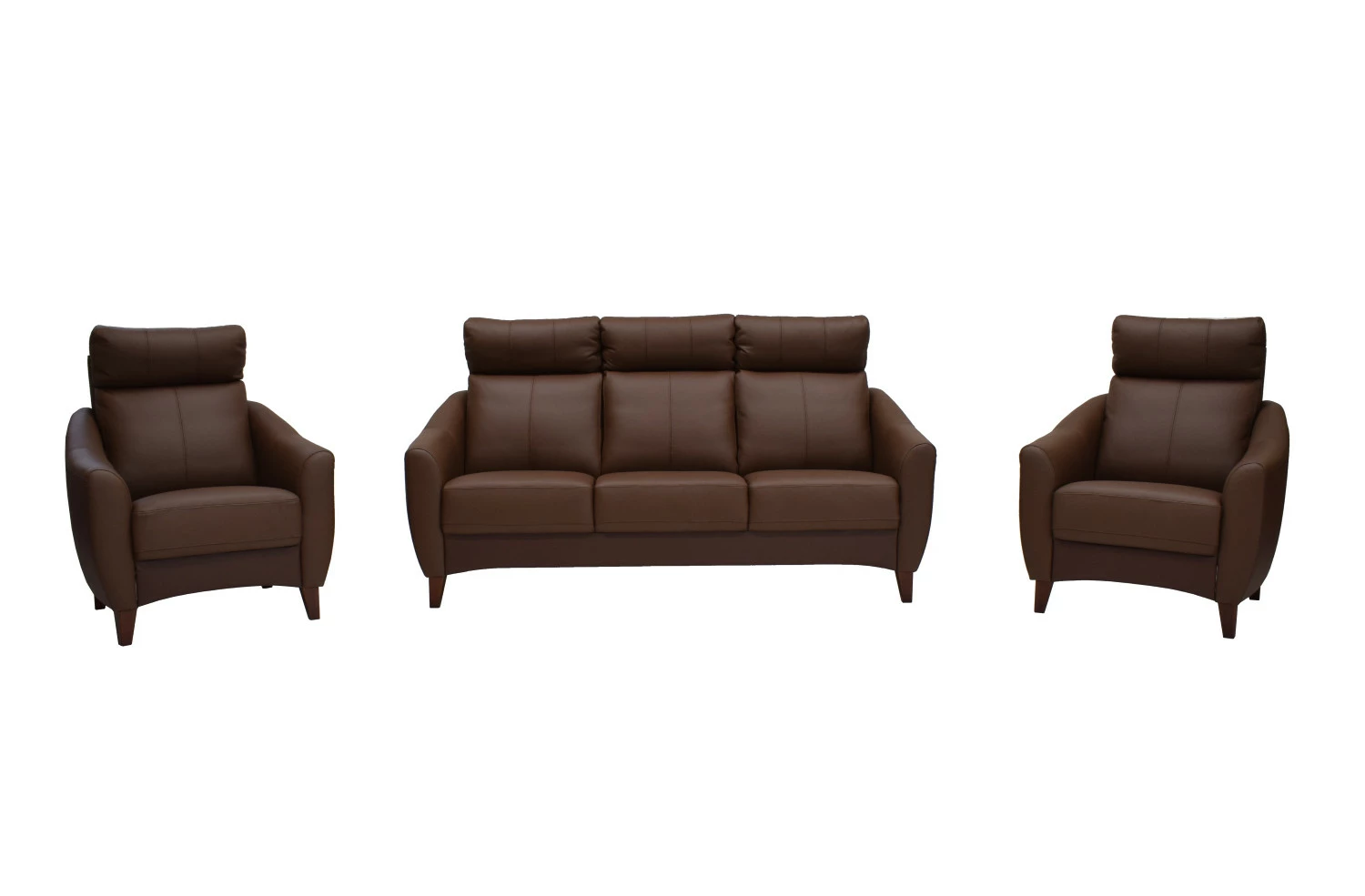 Sohvan ja nojatuolien kulutuspinnat on verhoiltu kestävällä aidolla nahalla, voit valita omaan kotiisi sopivan sävyn neljästä eri sävystä.