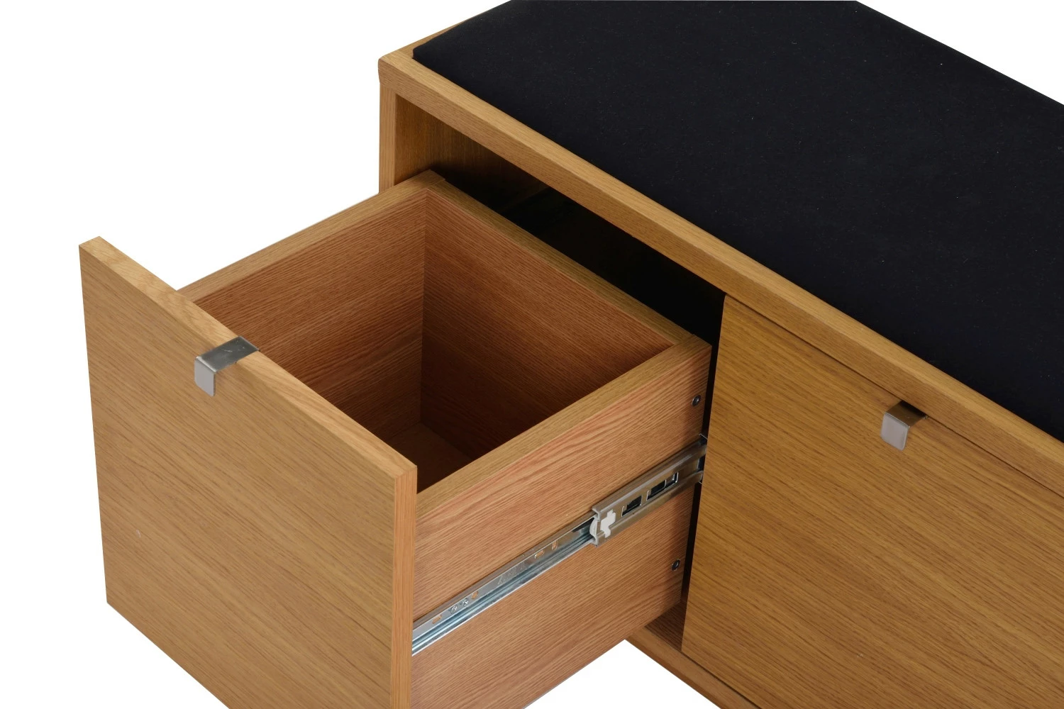 Valmistettu kalustelevystä, tammiviilutettu.
